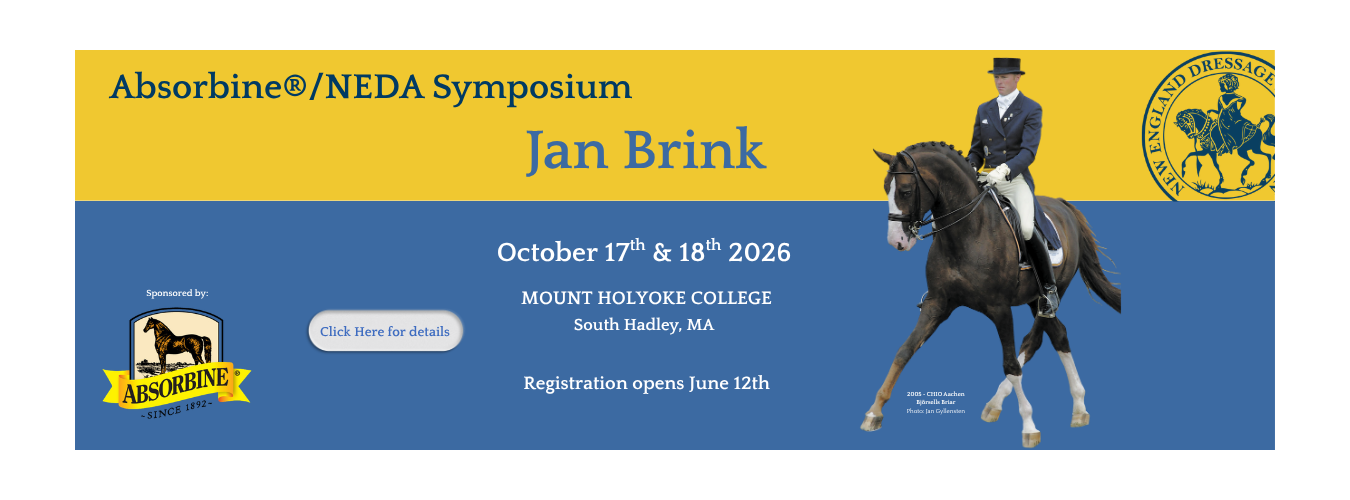 By the 1980’s NEDA had grown to 500 members, and has since grown to over 1,800 members from throughout New England. Education has continued to be a centerpiece of NEDA’s mission, with the two-week clinics evolving into symposia where the riders and horses are selected in order to provide the greatest learning benefit to those in the audience, rather than simply focusing on the particulars of the horse and rider at hand. NEDA has continued to welcome the top dressage trainers and riders from all over the world for these symposia, including Ulla Salzgeber, Anky van Grunsven, Steffen and Shannon Peters, Klaus Balkenhol, Hubertus Schmidt, Debbie McDonald, Stephen Clark, and Ashley Holzer. Audiences for these symposia have topped 600 enthusiastic auditors in locations from Maine to western Massachusetts. In addition, as clubs and barns throughout the region have increased their educational activities with clinics and programs, NEDA has launched an outreach program whereby NEDA promotes these activities to its members in exchange for discounted participation rates for NEDA members. The education mission is thriving in New England from its humble beginnings.