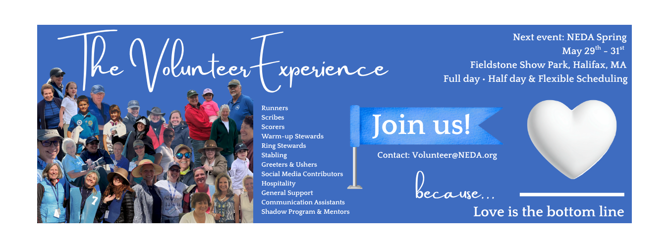 Have we made a difference in the growth and understanding of dressage in the region and in the country? You bet we have. You can see it in this history, and you can see it in the roster of national and international competitors and trainers that our region has spawned. They include Sue Blinks, Dorothy Morkis, Carol Lavell, Lendon Gray, Michael Poulin, Pierre St. Jacques, Pamela Goodrich, Susan Jaccoma, Larry Poulin, George Williams, Karl Mikolka, Shannon Dueck, Arlene "Tuny” Full Page, Ellen Dixon Miller, Bruce Miller, Michael Barisone, Tom Noone, Kathy Connelly, Sally Swift, Cindy Sydnor, Jane Savoie, Karen Stives, Meg Plum, Denny Emerson, Mary Howard, Karen Lende O’Connor and many, many others. And NEDA will continue to nurture the future stars of dressage with its active combination of education, competition, and support for the art and sport of dressage.