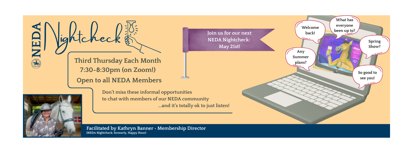 NEDA established its annual report, The Salute, at its very inception, and then later added a monthly newsletter, A Tip of the Hat, eagerly awaited by members for its informative briefings on all things dressage. Both of these publications have won awards for content and appearance from USDF over the years. Keeping up with the times, it built an award-winning website and more recently launched various electronic communications modes, including an e-newsletter, Facebook pages and other social media. Its communications network is one of its most valuable assets, reaching members and non-members alike with all the latest information and event happening in the region.